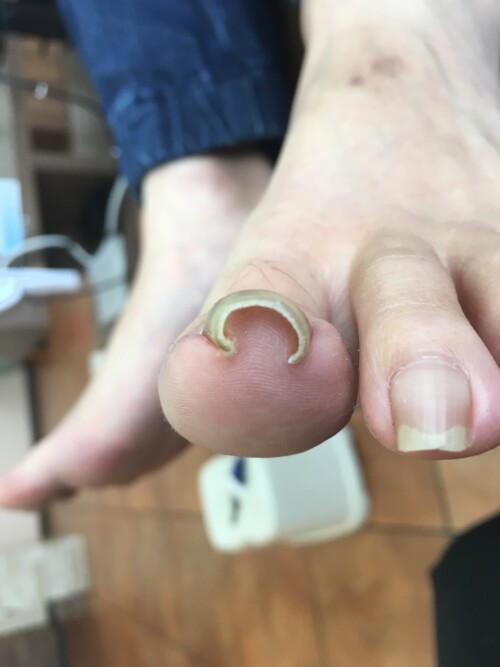 巻き爪は放置すればするほど爪の巻き込みが強くなり芯も深くなっていきます。